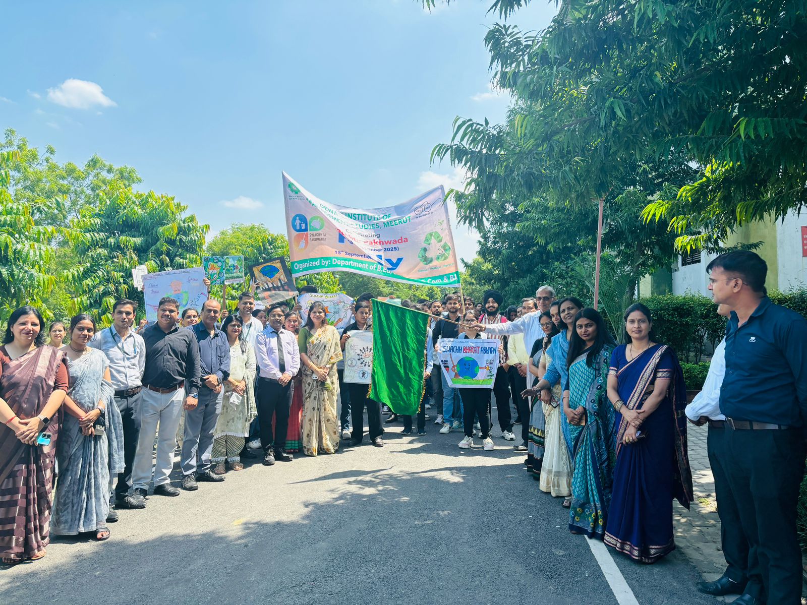 Dewan Institute of Management Studies proudly celebrated Swachhta Pakhwada on 15th September 2025 with a series of impactful activities promoting cleanliness and environmental responsibility. Highlights of the Day: Inspiring Poster Making Competition Energetic Swachhta Rally Dedicated Campus Cleaning Drive The rally was ceremoniously flagged off by Executive Director Col. Dr. Naresh Goyal Sir, and the event was further graced by Dr. Shweta Sharma (Dean, BBA & BCA) and Dr. Munendra Kumar (Principal, DIMS). Faculty members and staff from BABCom, B.Ed., BCA, and BBA departments also extended their wholehearted support. Students participated with great enthusiasm, showcasing creativity, commitment, and a strong sense of social responsibility. Together, we reaffirm our pledge towards a Cleaner and Greener India.
